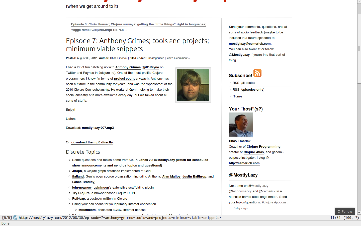 | 00:19 | djanatyn | clojure just helped me on my stats homework packet :) |