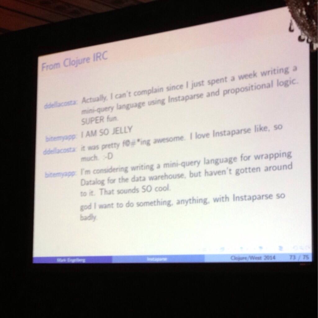 | 23:21 | arrdem | it just means I won't share the weird stuff I've built with Clojure because it isn't relevant :P |